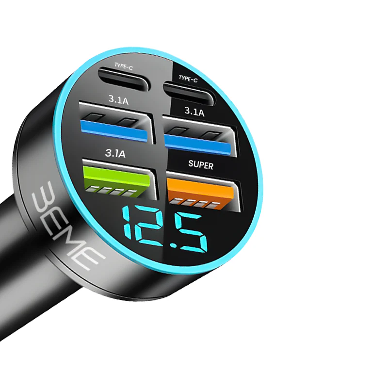Stay fully charged wherever the road takes you with the BEME FlashVolt 2C — a smart, powerful, and stylish car charger designed for today’s tech-savvy driver. Equipped with 4 USB ports and 2 Type-C PD ports, it supports simultaneous charging of 6 devices, ensuring no gadget is left behind.